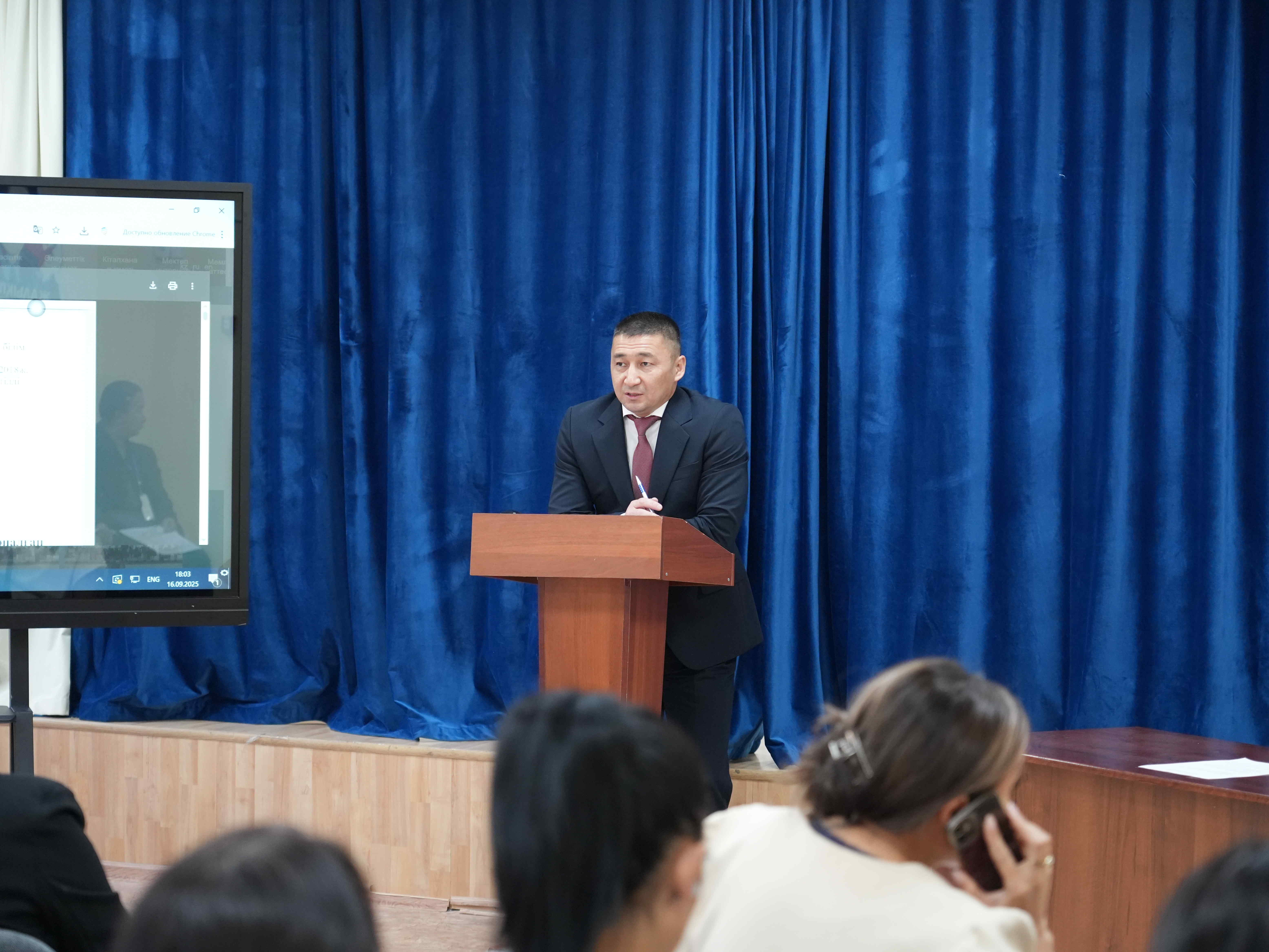 Тәрбие ісі жөніндегі орынбасар Г.Ж. Сагинова лицейдегі мектеп формасына қойылатын талаптар, оқушы мен ата-анаға қойылатын ішкі тәртіп ережелері туралы жан-жақты түсіндіріп өтті. Сонымен қатар, 2025-2026 оқу жылында іске асырылып жатқан жаңартылған «Адал азамат» біртұтас тәрбие бағдарламасының мақсаты мен негізгі бағыттарымен ата-аналарды таныстырды. Бағдарлама аясында оқушылардың адамгершілік, азаматтық жауапкершілік, ұлттық құндылықтарға негізделген дүниетанымын қалыптастыру мәселелеріне баса назар аударылатыны атап өтілді.
