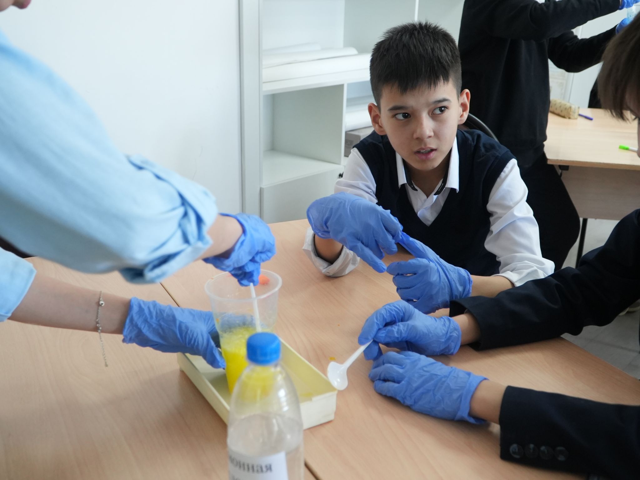 8 «В»-сыныбында да аталған жоба негізінде «Мамандығым – мақтанышым» тақырыбында сынып сағаты ұйымдастырылды. Ата-аналар Индира Салтановна мен Гульмира Мендыбаевна оқушылармен кездесу өткізіп, оқушыларға мамандық таңдаудың маңыздылығы, заманауи және жаңа мамандықтар, жасанды интеллекттің қоғамдағы рөлі жөнінде әңгімелеп, оқушылар кәсіби бағдар жөнінде маңызды мәліметтер алды. «Вулкан» және «Неньютондық сұйықтық» тәжірибелері көрсетіліп, химиялық және физикалық құбылыстар тәжірибе арқылы түсіндірілді. Бұл жұмыстар оқушылардың ғылыми қызығушылығын арттырып, зерттеушілік дағдыларын дамытуға ықпал етті.