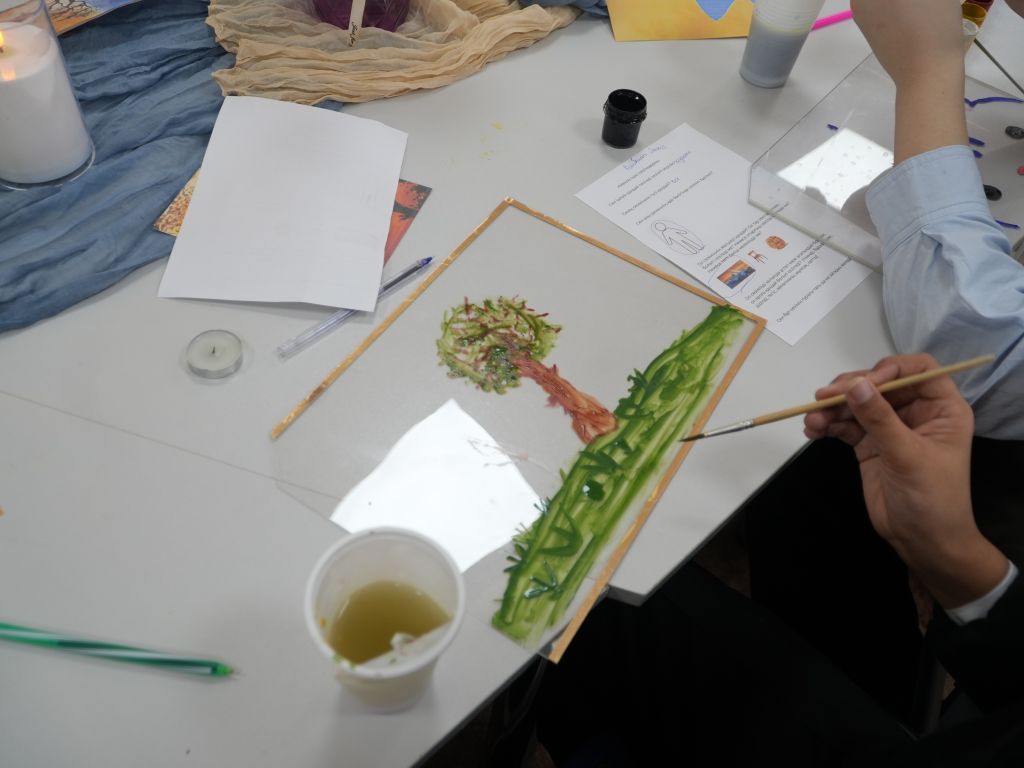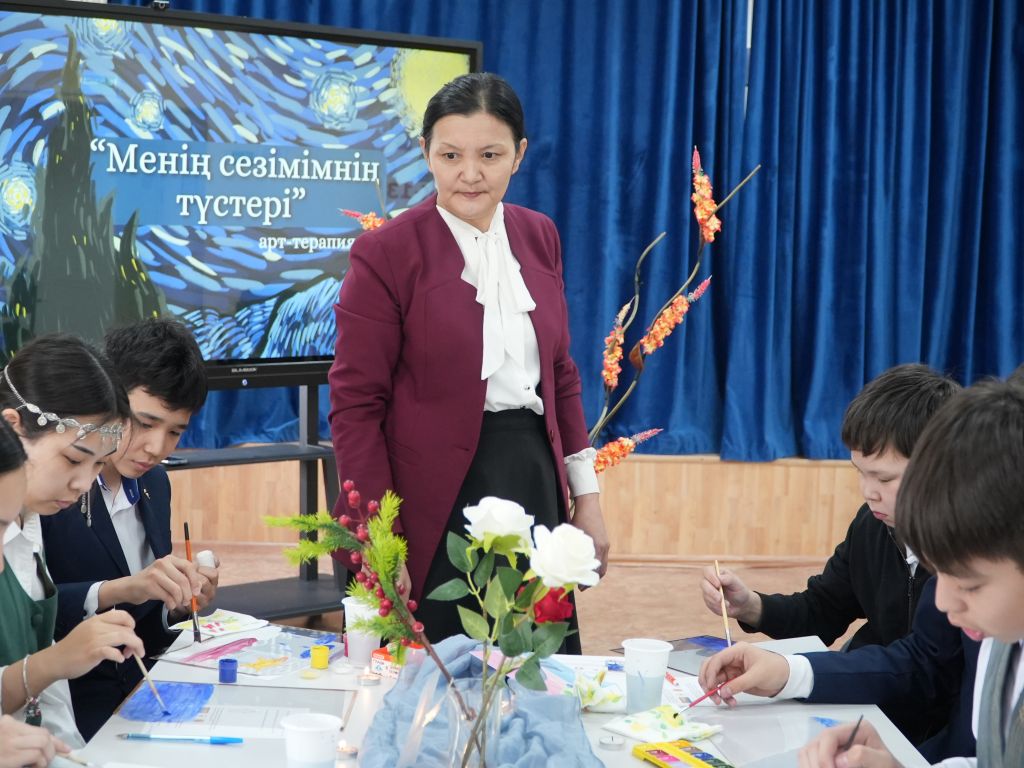 Түстен кейін 7-8 сынып оқушыларымен «Менің сезімімнің түстері» атты арт-терапиялық тренинг өткізілді. Шығармашылық жұмыс барысында қатысушылар ішкі жан дүниесін, арман-тілектері мен толғаныстарын бояулар тілімен қағаз бетіне түсіріп, психологиялық релаксация жасауға мүмкіндік алды.